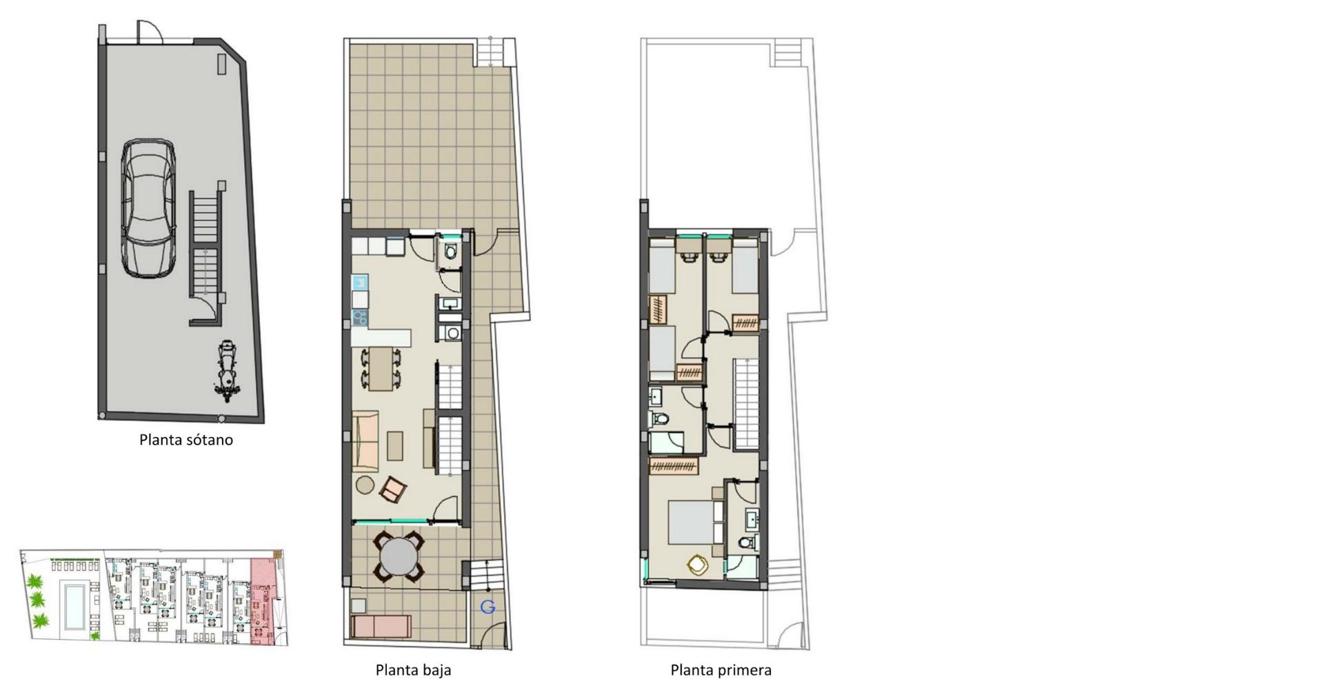 New Build Beachfront Semi Detached Villas in Moncofa with Sea Views Prime Location on the Coast of Castellón Discover an exclusive development of contemporary semi detached villas located in first line of the beach in Moncofa, between the coastal areas of Chilches and Moncofa. This privileged setting on the Costa del Azahar offers direct access to peaceful sandy beaches and a relaxed Mediterranean lifestyle. The area is ideal for both permanent living and holiday use, with local restaurants, beach bars, supermarkets and essential services within a short distance. Moncofa is well connected by road, allowing easy access to nearby towns and cities such as Castellón and Valencia. Modern Design and Functional Layout This boutique development consists of just 7 elegant homes, designed with clean architectural lines and a focus on comfort and everyday living. Each property features 3 bedrooms, 2 bathrooms including one ensuite, and an additional guest toilet. The homes are distributed over three levels, maximizing space and natural light. The ground floor offers an open plan living and dining area with a fully equipped kitchen, seamlessly connected to a private terrace with beautiful sea views. The first floor hosts the bedrooms, including a spacious master suite, while some units also include a terrace on this level. The basement level provides a private garage for 1 or 2 vehicles and additional storage space. Quality Finishes and Ready to Move In All villas are delivered fully furnished. The kitchens include appliances, and bathrooms come complete with furniture, mirrors and shower screens. The properties also feature fully installed air conditioning and an efficient aerothermal system for hot water, ensuring comfort and energy efficiency throughout the year. Exclusive Community and Lifestyle The residential complex includes a communal swimming pool and landscaped gardens, all set in a frontline beach environment. This creates a peaceful and secure atmosphere, perfect for enjoying the Mediterranean climate and outdoor living. Distances to Key Points of Interest Moncofa Beach: 0 km Chilches Beach: 2 km Castellón city center: 30 km Valencia city: 50 km Valencia Airport: 55 km Castellón Airport: 45 km Nearest golf courses: approximately 20 km Your Mediterranean Home Awaits Whether you are looking for a permanent residence, a holiday home or a smart investment, these beachfront semi detached villas in Moncofa offer a unique opportunity to enjoy the sea, comfort and modern design in one of the most authentic coastal areas of Spain. Contact us today for more information or to arrange a visit. 1000